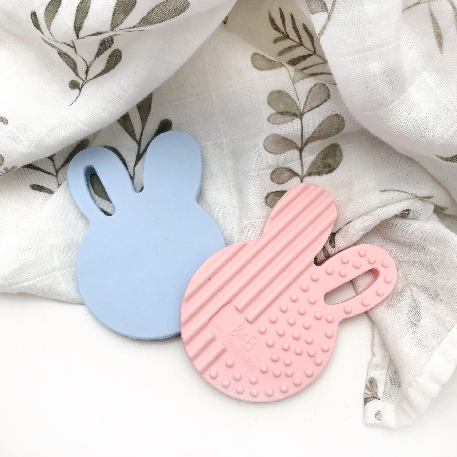 Featuring the all-new teething disc design with ONE.CHEW.THREE's exclusive dual texture reverse for maximum stimulation, massaging and soothing. And the bunny designs are not just cool, they're practical too with ears that reach right along the gum. They're perfectly sized for little hands to hold and little mouth to chew and the one-piece moulded design has no holes for moisture to hide. Hot tip, you can even pop them in the fridge or freezer for extra cooling relief!