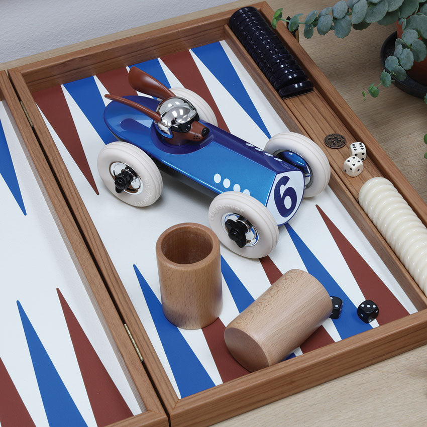 Grrrrreat fun is to to be had with the Rufus range of midi cars from Playforever. Rufus Bertie is what style is all about in his metallic blue racing car! With the wind rushing through his ears, his goggles and chrome helmet keep him safe while he zooms around the track in style. The classy white tyres with chrome trims add a touch of elegance to this charming toy.